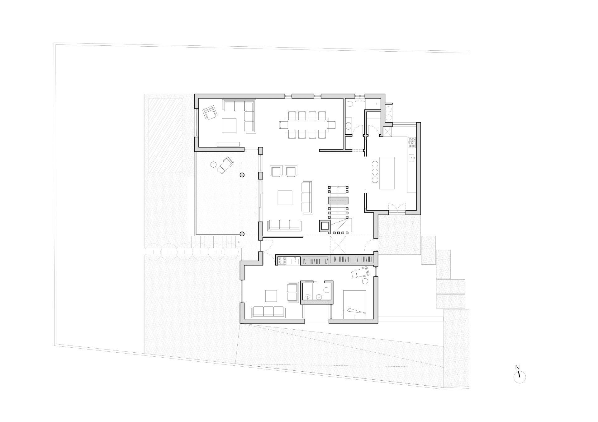 O projecto de grande ampliação, requisitos para uma família numerosa, procura renovar e modernizar a imagem da casa privilegiando espaços amplos e generosos vãos.